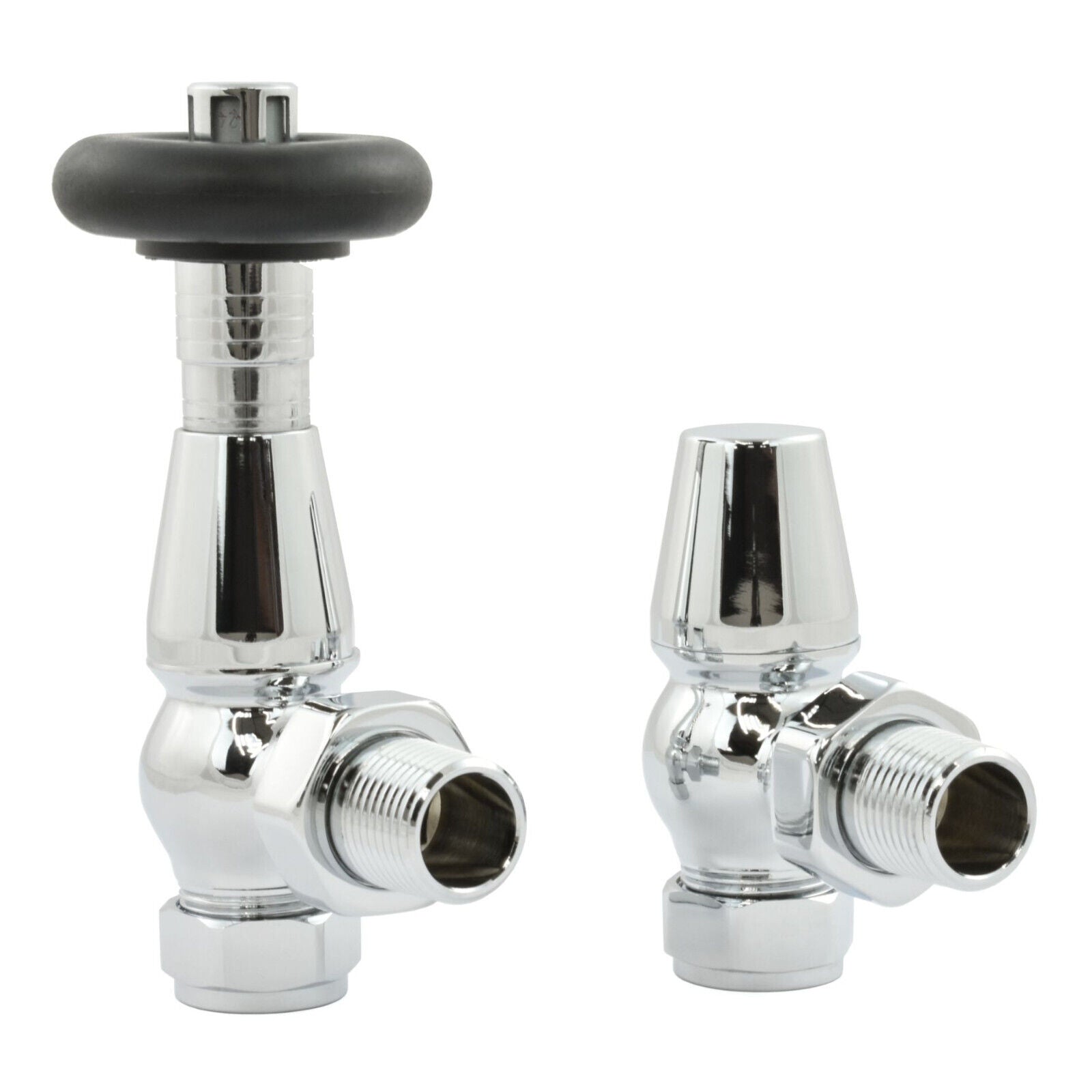 Traditional thermostatic radiator valve and lockshield are selling in pairs.